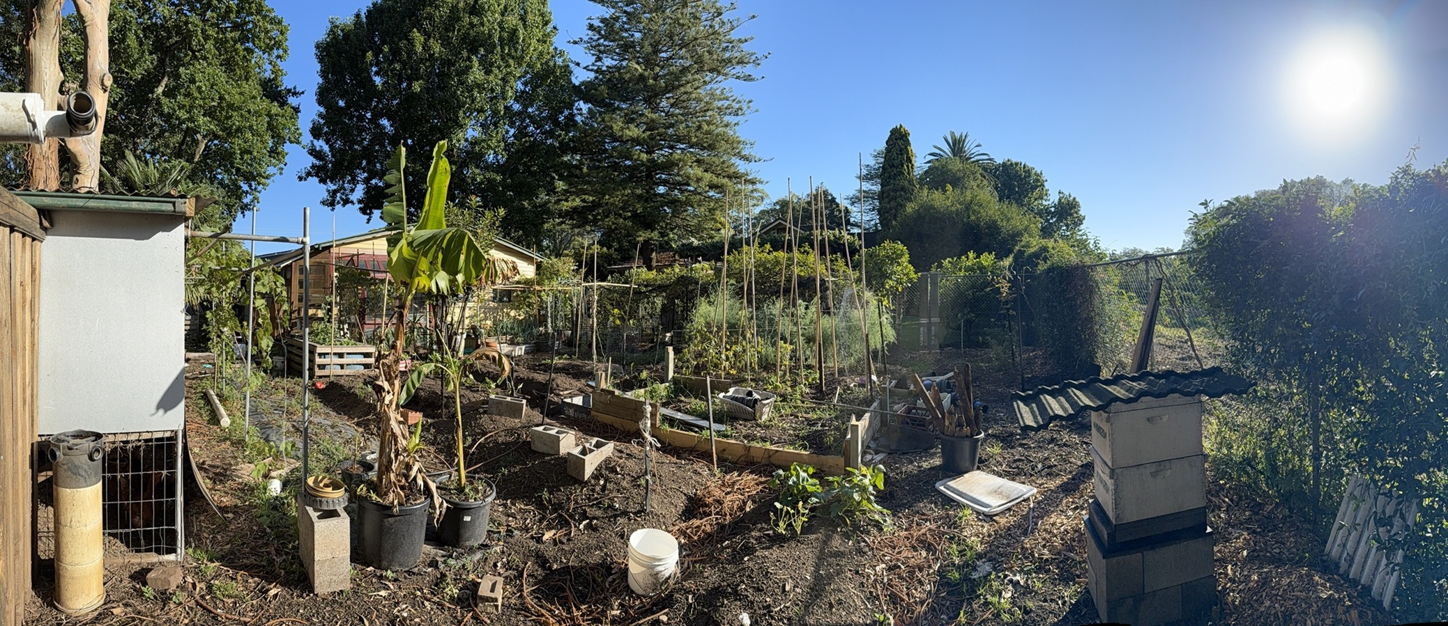The rear of the property is home to our fruit and vegetable gardens, along with chickens and beehives. Since purchasing the property almost ten years ago, our aim has been to move towards a more sustainable lifestyle by growing our own fruit and vegetables. We’ve spent many years composting and improving the soil, although gardening means working alongside nature and things don’t always go to plan.