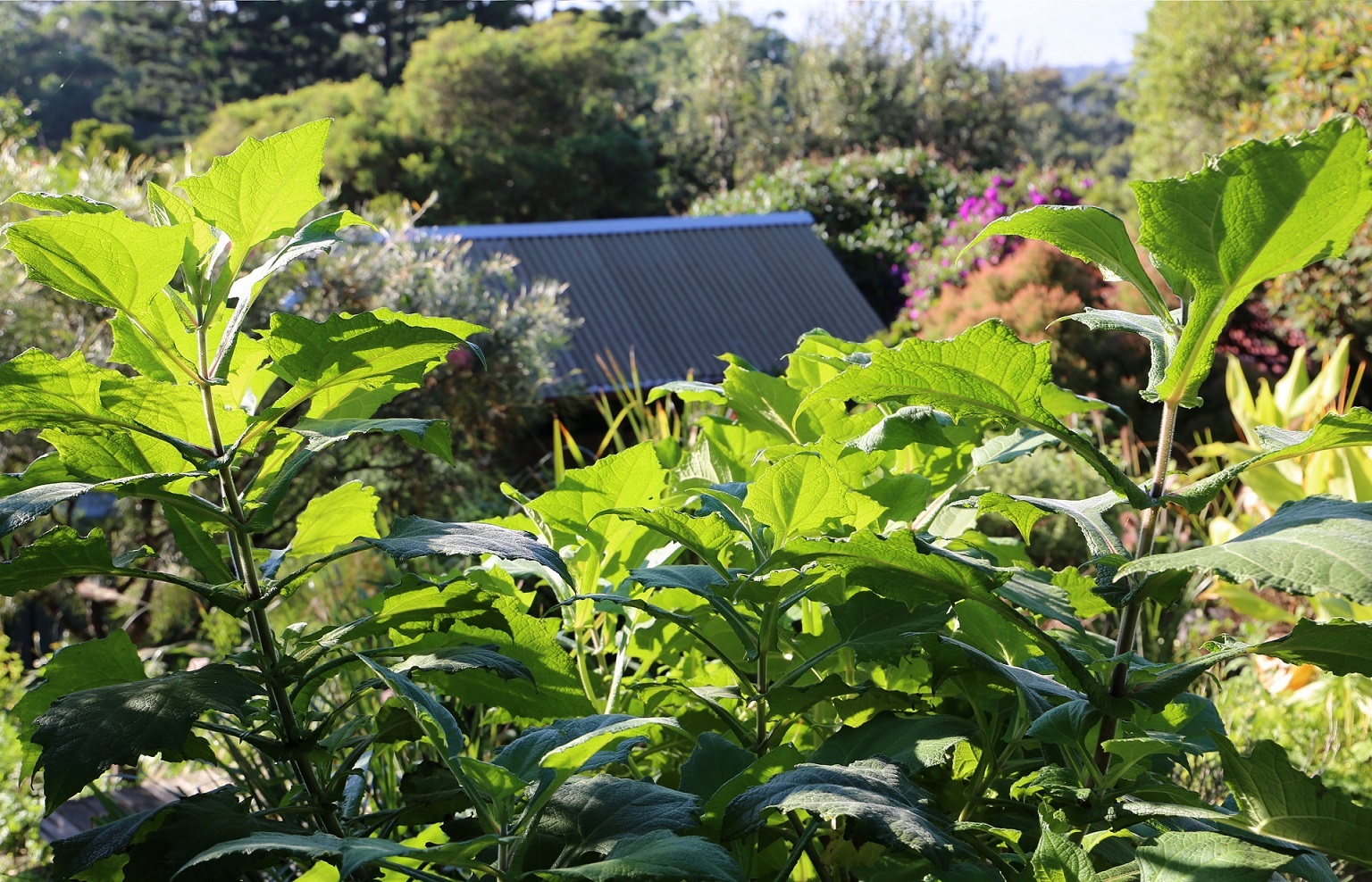 A 14 years old large suburban food garden on a north-east facing steep hill, Moss House is designed using permaculture principles to supply the household with fresh fruit, vegetables, medicinal herbs, plant fibres and eggs (as seen on Gardening Australia https://www.abc.net.au/gardening/how-to/a-productive-paradise/9437728)