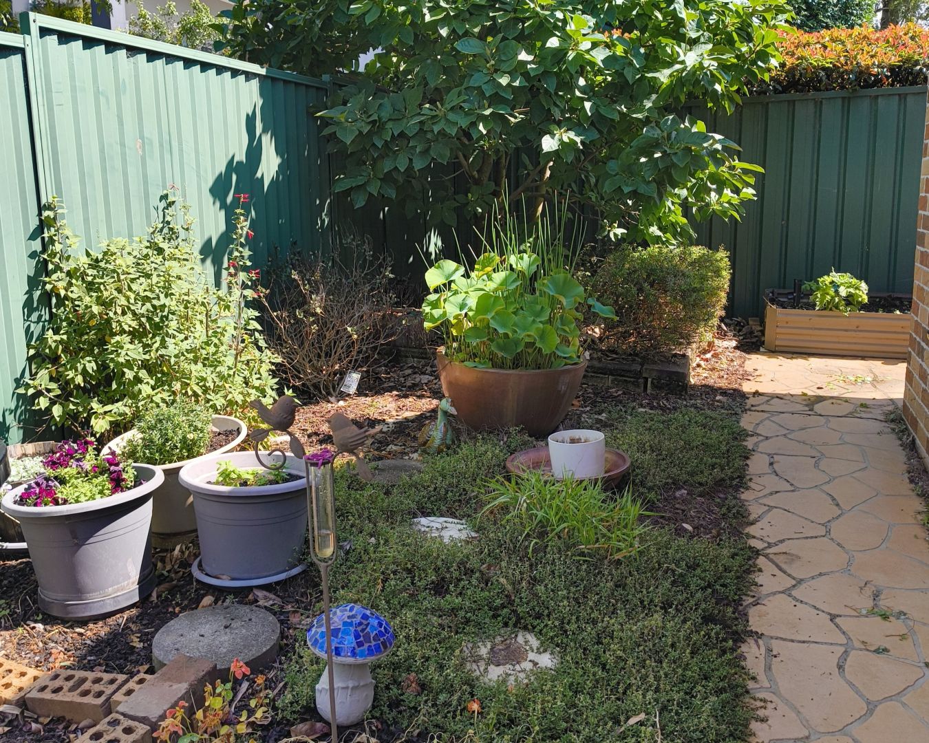 Our garden is just over 6 years old, combining elements of cottage, potager and habitat garden styles across several distinct spaces. The site is on an unusually shaped block on clay soil, which presents some interesting challenges but also has its good points. The design has evolved a few times, with some major changes made during 2025. We now have several fruit trees, an espalier pomegranate, a quail pen, and a variety of edible and flowering plants, trees and grasses to provide food and increase the biodiversity of the garden. If it’s a sunny day, you’re likely to see at least a few lizards when you visit!